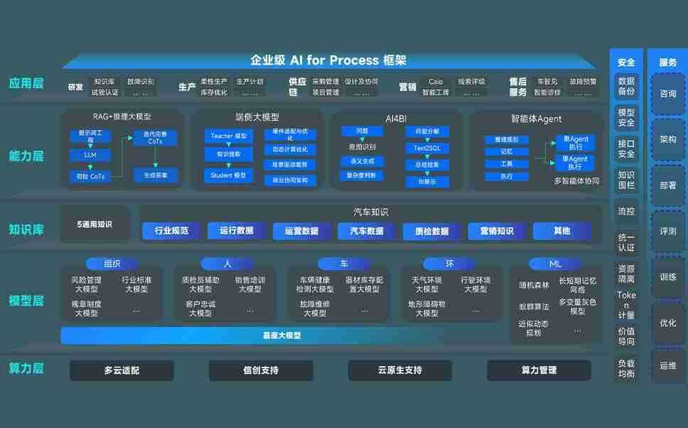 意昂2问学智车解决方案是一套基于AI技术的汽车行业智能化系统,,,覆盖从底层算力到顶层AI应用的全栈方案。。方案由算力层、、、模型层和应用层组成:算力层,,,,方案支持多种一体机配置,,,具备云端灵活部署、、多云适配以及动态优化计算资源的能力;模型层,,,意昂2问学平台版提供了企业级AI应用一站式构建与管理平台,,,支持基于后训练强化技术的汽车企业专属模型的训练、、、、评测和运营;应用层,,,,意昂2问学DeepSeek版提供包括超级员工、、、、智能招采、、、智能营销、、、、智能客服、、、AI for BI等一系列解决方案,,,可助力汽车行业实现数字化转型,,让管理更智能、、、响应更敏捷。。。。